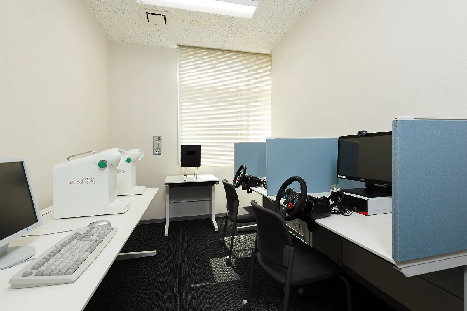 研修棟2Fには運転適性診断が受講できる検査室を備えており、「運転のクセ」を様々な角度から測定し、運転技能の向上に活用しています。