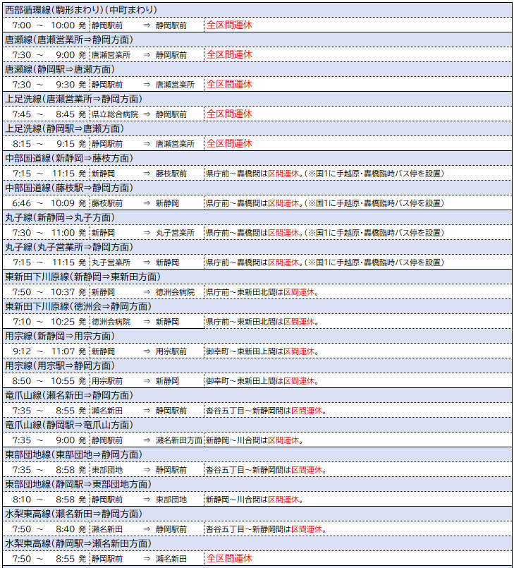 「静岡マラソン2026」の開催に伴う交通規制により、静岡市内各路線に迂回・運休が発生します。ご利用の際はご注意下さい。また、交通規制に伴う道路渋滞により大幅な遅延が予想されます。お急ぎの方はその他の交通機関をご利用ください。