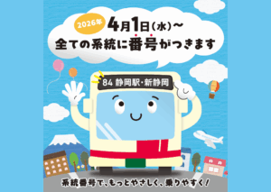 この度、地域の皆さまや訪日外国人を含む観光客の皆さまなど、どなたでも分かりやすく路線バスをご利用いただけるよう、当社全エリアにおいて路線バスの「系統番号」によるナンバリングを実施いたします。今回導入する「系統番号」によるナンバリングは、バス車両前面の「LED方向幕」への表示や「時刻表」「路線図」「乗り場案内図」「静鉄バス運賃・経路・時刻サイト」などにも展開し、さらなる移動利便性の向上を目指します。
