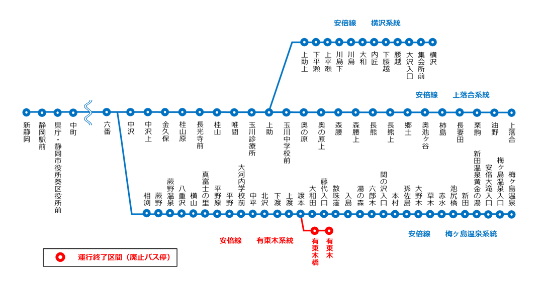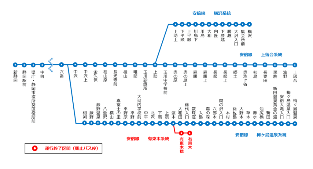 この度、「安倍線 有東木系統」は、地域主体による自家用有償旅客運送の運行開始に伴い、2026年3月31日(火)を以て運行を終了する運びとなりましたのでお知らせ致します。