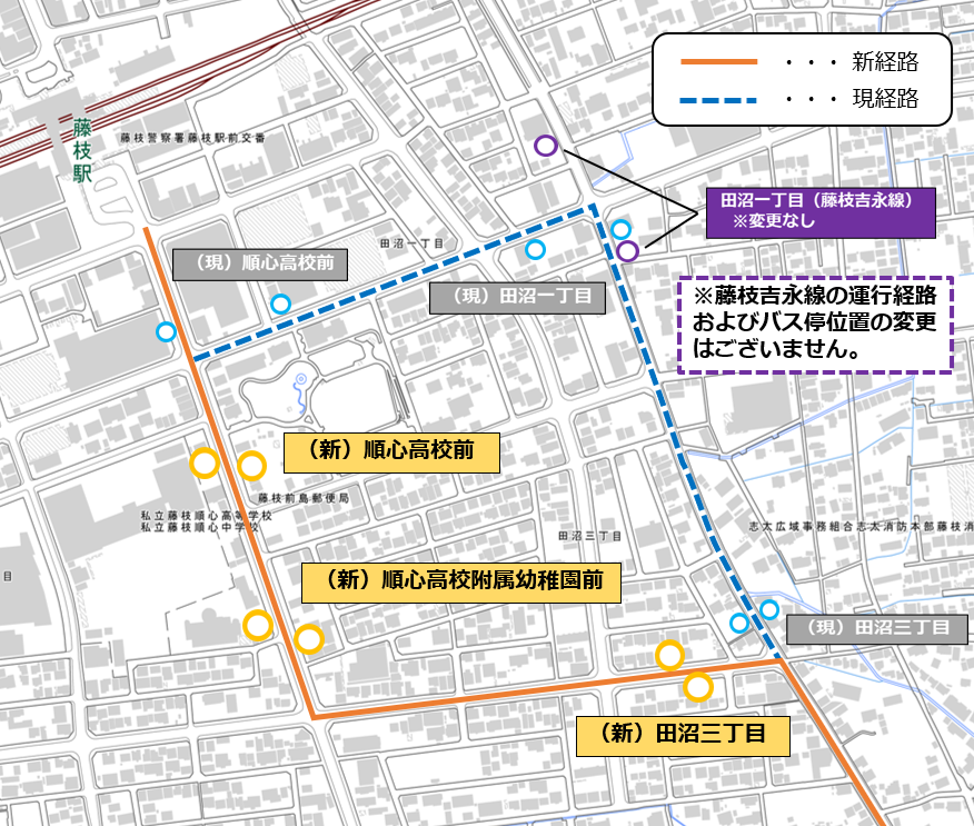 移設停留所:「田沼三丁目」「順心高校前」