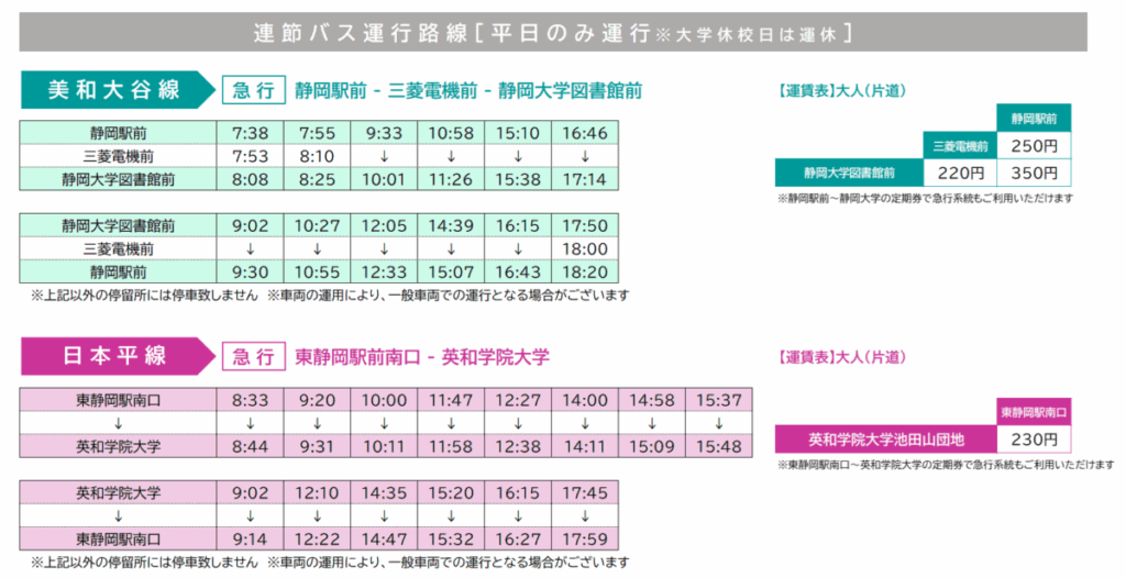 平日のみ運行(静岡大学休校日運休) 往復計12便
